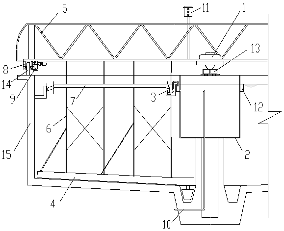9.根據(jù)權(quán)利要求1所述的適用于皮革廢水輻流式二沉池浮泥的刮除裝置,其特征是:所述集渣斗的一端設(shè)置有沉槽。