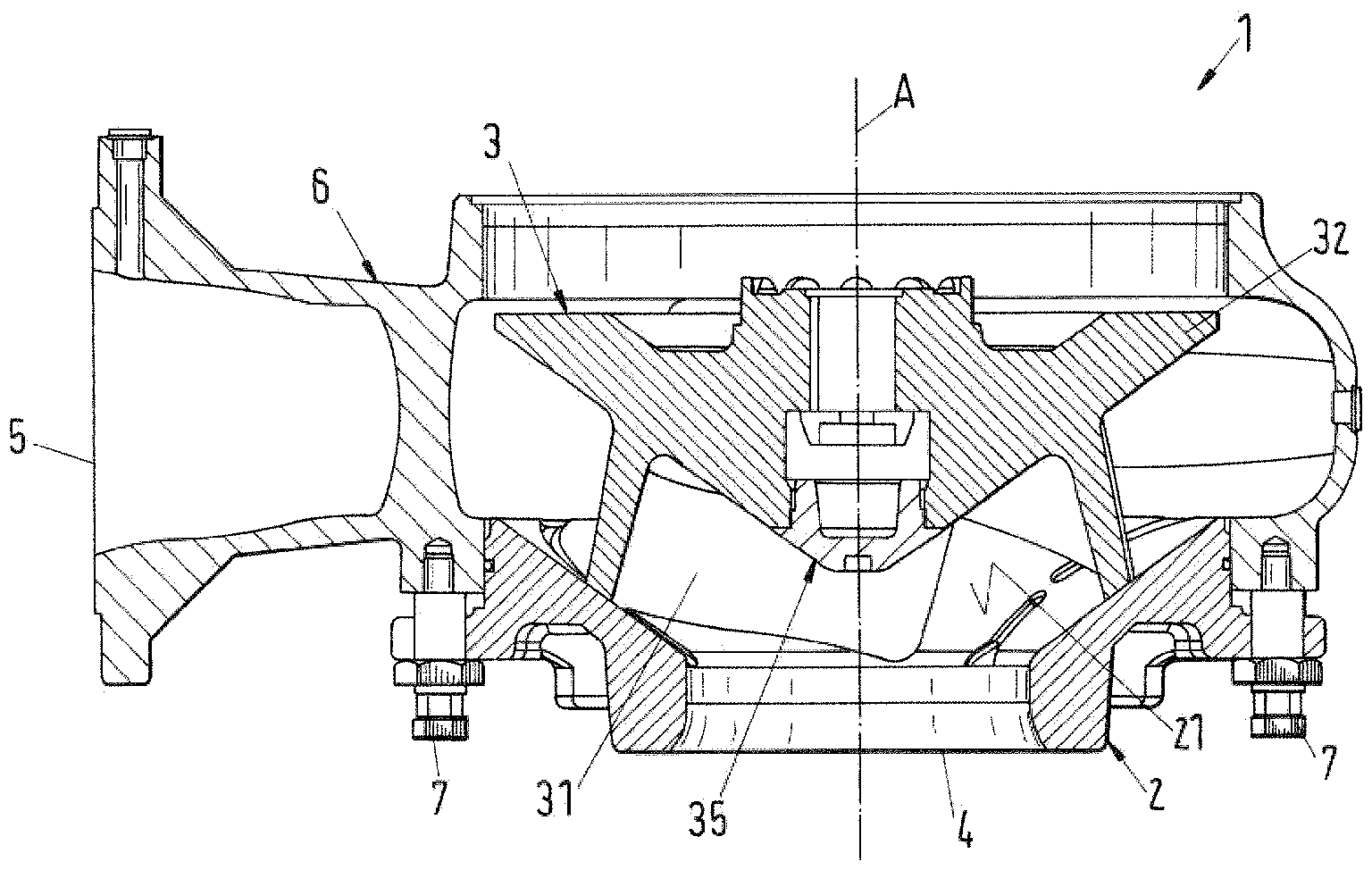 在承載體構造成截錐形時可以實現關于固體物質的特別好的通過特性。通過承載體的傾斜有效抵抗了固體物質的積聚。那樣的話,葉輪構造成半軸向葉輪。
