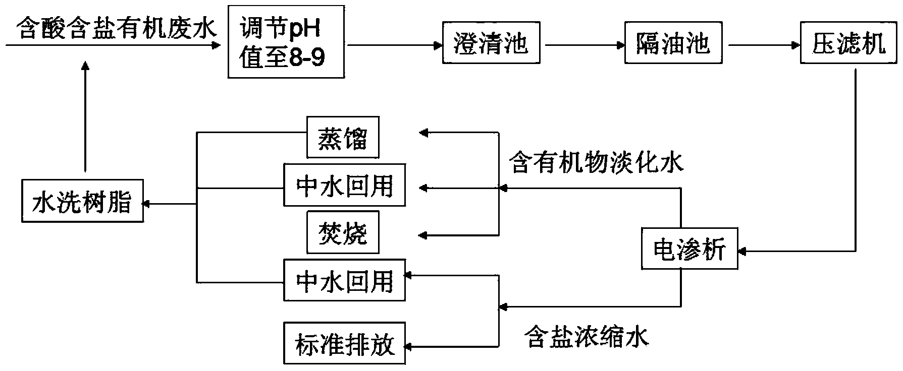 技術(shù)方案:本發(fā)明所述的一種含酸含鹽有機(jī)廢水的處理方法,包括以下步驟: