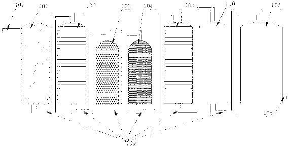 1.一種香水用純凈水處理裝置,其特征在于,包括通過管道(109)依次連接的石英砂過濾器(101),活性炭過濾器(102),保安過濾器(103),反滲透過濾裝置(104),二次石英砂過濾器(105),混合床(110)以及蓄水罐(106),前一級組件的底端設有出口與后一級組件的頂端設有的入口相連,所述活性炭過濾器的側壁上設置有原水進水口(107),所述蓄水罐(106)的側壁下端設置有純凈水出水口(108)。