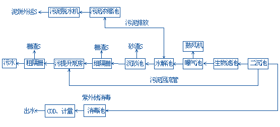 截止2007年8月,注冊資本1325萬元,資產總額1780萬元,現有職工18人。該廠是靜海縣第一個污水處理廠,也是天津市自來水集團有限公司第一個采取BOT形式建設的項目。該廠日處理能力為1.5萬噸,采用厭氧水解生物過濾處理技術,其工藝流程為厭氧水解酸化—曝氣—高負荷生物濾池—紫外線消毒處理。該廠自 2006年3月投產運行,通過了環境保護行政主管部門的驗收。