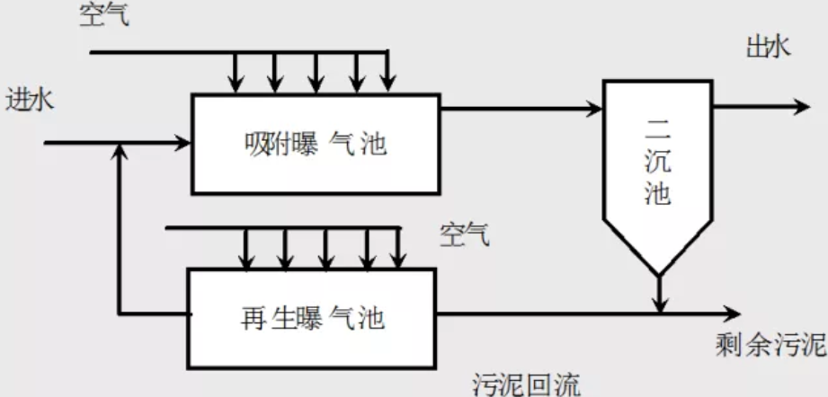 吸附再生活性污泥法系根據(jù)廢水凈化的機(jī)理,污泥對(duì)有機(jī)污染物的初期高速吸附作用,將普通活性污泥法作相應(yīng)改進(jìn)發(fā)展而來(lái)。