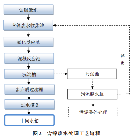 分析以上含鎳廢水處理工藝流程,跟蹤測量廢水日排放量,可以確認處理系統設計合理,不存在原則性問題。