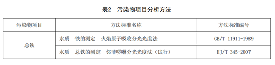 (3)污染物項(xiàng)目的監(jiān)測(cè)分析方法按表 2 執(zhí)行。
