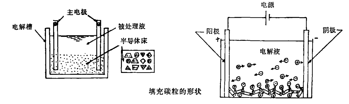 日本的這種半導(dǎo)體床的主要成份是碳粒。即在陰極和陽極之間充填以碳粒,以克服稀溶液較高的電阻。通電以后,氰化物很快即被分解。例如含氰濃度為6000毫克/升,僅僅用30分鐘即處理完畢。另一試驗證明氰化物濃度為16毫克/升,當(dāng)電流濃度為1安培/升時,處理時間只需15分鐘。