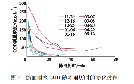 1.3.2路面雨水徑流中COD變化規(guī)律