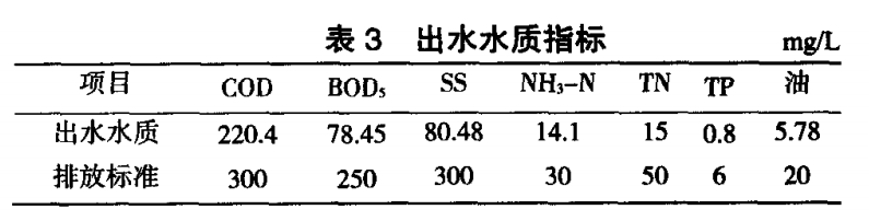 該污水站自2016年5月份開工建設,建設規模小,且大部分處理設施為鋼板焊接,建設周期較短。經第三方檢測,出水達標,正式投入運行。定期出水監測表明,采用本組合工藝,適合處理鹿茸加工廢水,出水COD、BODs、氨氮及懸浮物ss均達到排放要求,處理效果見表3由表3可以看出,采用氣浮,水解酸化/MBR膜反應器/砂濾組合工藝處理后,出水效果較好,各項指標均達到《遼寧省污水綜合排放標準》(DB21—1627—2008)的排放要求。