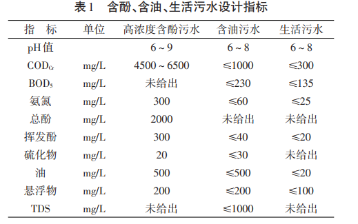 1.3.1蘭炭污水設計進水水質標準,見表1