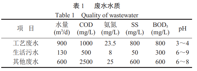 目前污水處理系統處理水量為 1730m3/d,廢水根據其產生情況分為工藝廢水、生活污水和其他生產廢水。各項具體水質見表 1。