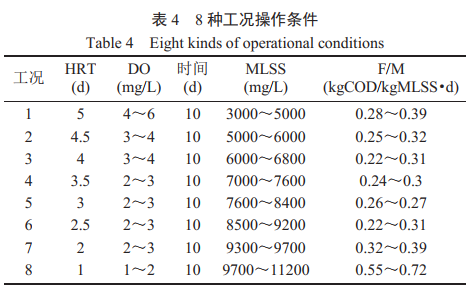 出水 COD,但在第 8 段,HRT 為 1d,污泥濃度達10g/L 時,曝氣困難,溶氧偏低,污泥負荷達到 0.5~