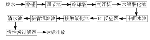 某檳榔廠主要生產青果檳榔,生產工藝為:檳榔干果、熱燙清洗、浸泡護色、干燥、炮制、切片、真空包裝、微波殺菌、包裝咱1],在熱燙清洗、浸泡護色等工序中產生大量的檳榔廢水咱圓暫,廢水量為1000m3/d。為降低污染物外排給環境造成影響,該企業投資建設污水處理設施,采用預處理-氣浮-IC-接觸氧化-活性炭過濾組合工藝處理檳榔廢水,處理后出水水質達到GB8978—1996《污水綜合排放標準》一級排放標準。