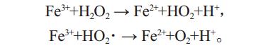 H2O2在Fe2+的催化作用下生成具有高反應活性的羥基自由基•OH,•OH能有效氧化去除傳統廢水處理技術無法去除的難降解有機物,包括有機氟。當pH<4時,溶液中的H+含量較高,會發生如下反應: