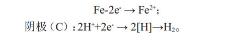鐵碳反應是在酸性介質中進行,其陽極(Fe)反應式為: