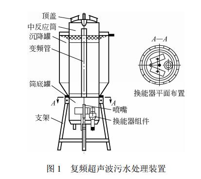 該裝置的3個換能器頻率分別為20kHz、100kHz、200kHz,頻率20kHz的換能器為聚能型結構,頻率為100kHz、200kHz的換能器為振板式結構,功率均可調,復頻作用時不同頻率換能器相互配合形成混響場。
