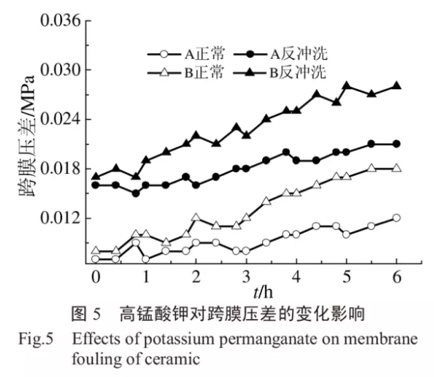 2.4高錳酸鉀對跨膜壓差的變化影響
