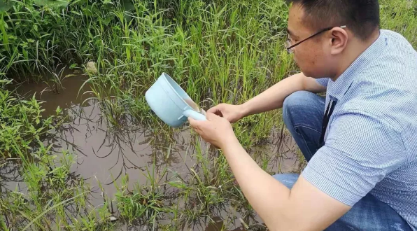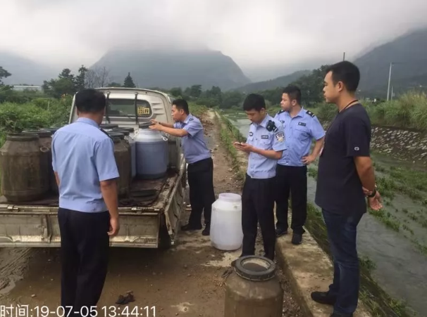 7月5日中午12時40分,獲悉淡溪鎮陳坦村溪邊有人傾倒工業廢水,虹橋環境監察中隊和淡溪鎮相關部門執法人員立即趕赴現場。