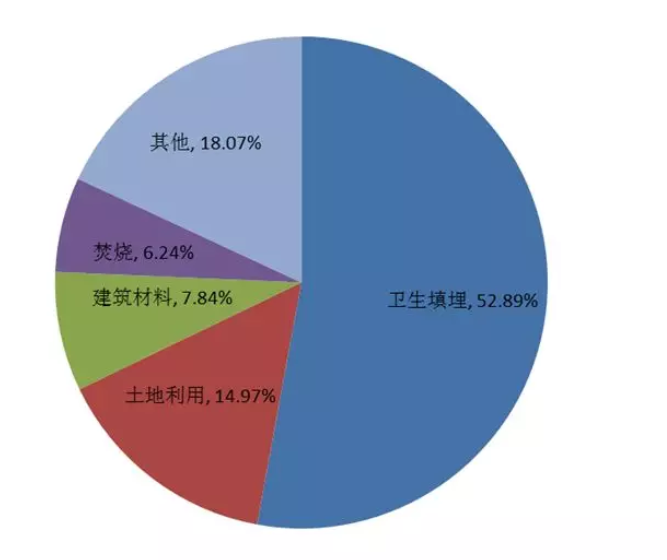數(shù)據(jù)顯示(如下圖1所示),當前全國污水處理廠產(chǎn)生的污泥,50%以上以衛(wèi)生填埋的方法進行了處理處置,15%的污泥進行了土地利用,6%的污泥以焚燒的方式進行處理,8%的污泥經(jīng)處理處置后進行了建筑材料利用,約18%的污泥去向不明。(注:之所以說18%的污泥不知去向,是因為在調(diào)研時,此部分污泥產(chǎn)生量的單位在處置方式上選擇了其他處置方式的污水處理廠,很大程度上是對污泥進行了不當處置,去向不明)。一半以上的含水率80%的濕污泥采用了填埋的簡易處置方式,這種方式是一種過渡性措施,二次污染的風(fēng)險嚴重,而且,目前很多地方已經(jīng)沒地可埋。