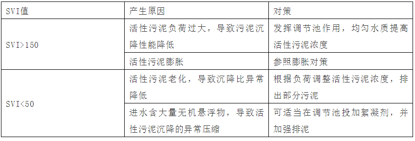 運(yùn)行中要注意的是,當(dāng)負(fù)荷低時(shí)要相應(yīng)調(diào)整曝氣量,否則過(guò)度曝氣將導(dǎo)致SVI增高,容易被誤判成污泥膨脹。
