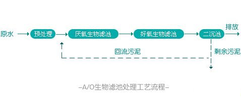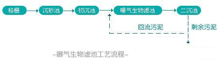 工藝簡介 曝氣生物濾池(Biological Aeration Filtration),就是在生物濾池處理裝置中設置填料,通過人為供氧,使填料上生長大量的微生物。曝氣生物濾池由濾床、布氣裝置、布水裝置、排水裝置等組成。曝氣裝置采用配套專用曝氣頭,產生的中小氣泡經填料反復切割,達到接近微控曝氣的效果。由于反應池內污泥濃度高,處理設施緊湊,可大大節(jié)省占地面積,減少反應時間。 工藝流程