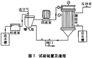 為便于分別考察曝氣池和膜組件的去除效果,試驗采用分置式膜生物反應(yīng)器,試驗裝置及流程見圖1。