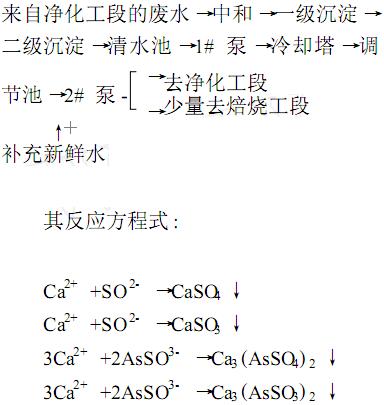 石灰乳與酸性廢水反應生成硫酸鈣、亞硫酸鈣、砷酸鈣、亞砷酸鈣,從而達到除硫、除砷的目的。
