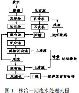 株洲冶煉廠是我國目前最大的鉛鋅冶煉企業之一,主要生產鋅、鉛、銅、鎘及鋅合金、硫酸等產品。其鋅冶煉系統采用傳統的沸騰焙燒-兩段浸出-凈液-電積工藝,因此生產過程產生大量含鋅、鉛、銅、鎘、汞、砷等有毒重金屬的酸性廢水。隨著新建10萬t/a電鋅系統的投產,排放廢水量越來越大,各種酸性廢水經明溝混合后一并進入廢水處理車間。重金屬酸性廢水采用消化石灰乳中和(污泥回流)-沉降處理工藝,處理能力為800~1200m3/h。處理后廢水基本達標排放。1996年完成鋅系統擴建后,同時還上馬了年產18萬t硫酸的系統,與此相配套,新建了廢水綜合治理二期工程,包括污酸廢水處理系統、廢水處理后凈化水回用等設施。