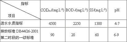 某葡萄糖廠現年生產能力為6×104t,其日排廢 水2400m3。水質指標見表1。