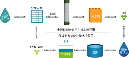 實踐證明,膜法制備鍋爐補給水系統(tǒng)符合環(huán)保和技術發(fā)展的要求,是典型的清潔生產(chǎn)工藝。
