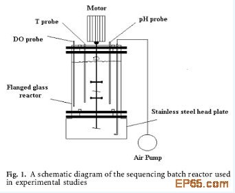 圖1為試驗裝置簡圖。5L的發酵罐(Bioflo IIC, New Brunswick)作為SBR反應器。發酵罐通過微電腦控制通氣、pH和溶氧(DO)。通過帶有曝氣透的空氣泵進行曝氣。攪拌速率在25 和300 rpm (rev min-1)。營養液中的pH 和 DO濃度通過相應的電極來連續監測。