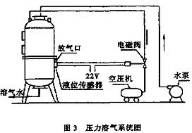 壓力溶氣系統(tǒng)流程見(jiàn)圖 3 。