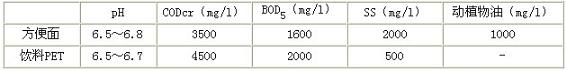 廢水來源為:方便面生產廢水:100 m3/d;飲料(PET)生產廢水:300 m3/d;員工生活污水:150 m3/d。設計廢水水量為600m3/d。