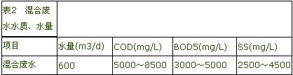 廢水經廠內地下管網匯集到廢水處理站,混合廢水的水質、水量見表2。