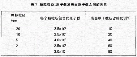 4.表面效應。表面效應是納米粒子及固體材料中重要的效應之一,是指表面原子數隨納米結構尺寸減小而急劇增大后引起的性質上的變化。表1是顆粒粒徑、原子數及表面原子數之間的關系。表面原子數的增加、原子配位的不足,必然導致納米結構存在許多表面缺陷,使表面具有很高的活性,極不穩定,很容易與其他原子結合。納米顆粒的粒徑極小,具有巨大的比表面積的表面自由能。