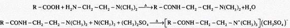 裝置同前,腐植酸叔酰胺加入一定量乙醇,控制pH為7~9,溶解溫度60-70℃,攪拌l h。進行季銨化反應。