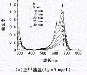 試驗結果表明,利用CGDE降解陽離子染料時,不考慮染料初始濃度以及催化劑的影響。在酸堿溶液中存在形態穩定的染料,如亞甲基藍等,改變反應液pH值對降解率無大影響。在堿性介質中,其降解率有所增加。而在酸堿介質中存在形態不穩定的染料,如甲基紫等,提高反應液初始pH值,可使染料分子迅速得到有效降解。