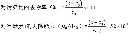 c為試驗水體中污染因子在第7天時的測定值(mg/L)