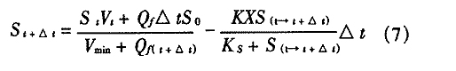 dS/dt=Q/[(Vmin+Vf)](S0-S)-KXS/Ks+S(4)