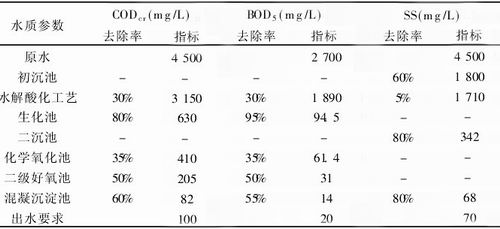 格柵→調節池→初沉池→水解酸化池→生化系統→二沉池→化學氧化池→二級好氧池→混凝沉淀池→達標排放