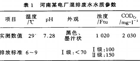 電廠廢水試驗水樣為真實水樣,取自鄭州市某電廠混合廢水排放口,混排廢水原始水質參數見表1。