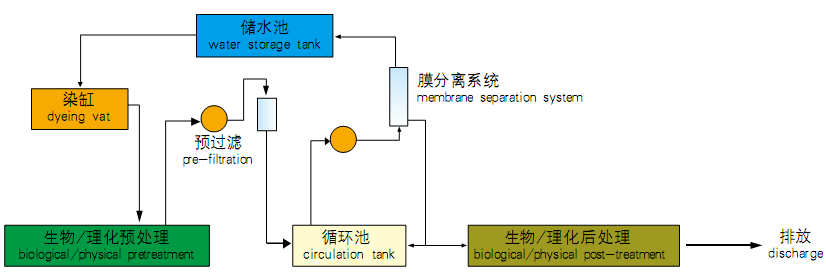 印染廢水是加工棉、麻、化學纖維及其混紡產品為主的印染廠排出的廢水,屬難處理的工業廢水之一,廢水中含有染料、漿料、助劑、油劑、酸堿、纖維雜質、砂類物質、無機鹽等。針對印染行業耗水量大、廢水成分復雜、水質色度較高和中水回用有難度的狀況,北京怡百信環境工程公司成功研發了印染廢水處理及回用的技術工藝,該工藝能使處理后的回用水水質大大好于國家一級排放標準,并能實現50%以上的中水回用率,使回用中水直接用于生產之中,每年能夠節約大量的新鮮水。在實現一級達標排放的基礎上,削減排污總量70%以上。