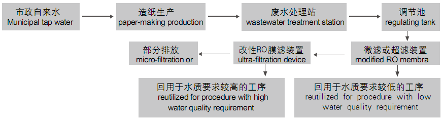 造紙工業既是水污染大戶又是用水大戶。據不完全統計,其廢水排放量達20多億噸,占全國工業廢水排放量的11%以上,COD排放量更是多達300多萬噸,占全國COD排放量的42%,居第一位。近年來,由于水資源的匱乏、經濟的持續增長,導致水資源價格的不斷提高以及面對嚴峻的環境污染形式,國家對環保執法力度的進一步加大,要求造紙企業尋求一種符合國家環保政策要求的新工藝、新技術,來實現造紙廢水的循環利用。怡百信公司針對造紙企業的這一需求,設計研發的造紙綜合排放廢水回用系統,通過對經傳統方法處理后達標排放的造紙綜合廢水作進一步深度處理,并可根據客戶不同的用水要求提供不同水質標準的回用水。該系統一方面能有效減少廢水排放,取得了良好的環境效益;另一方面節約大量水資源,降低生產成本,取得了良好的經濟效益。