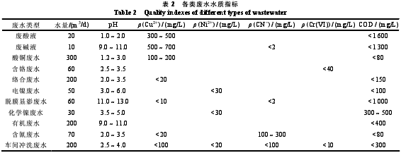 按污染物的性質不同,適度、合理地將生產廢水分流為11類廢水,各類水的水質指標如表2所示。