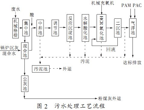 根據該廠的水質特點,確定的污水處理工藝流程如圖2所示。