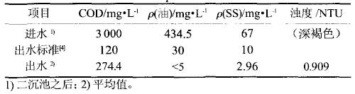 用磁分離技術(shù)對孤三聯(lián)合站污水進行綜合處理試驗,具有較好的效果,處理后油、懸浮物含量和濁度已經(jīng)很低,見表2。