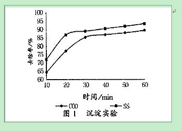 通過混凝、絮凝后實驗測知,沉淀時間越長處理效果越好,但考慮到生產實際的需要,沉降30min可以達到良好的處理效果。