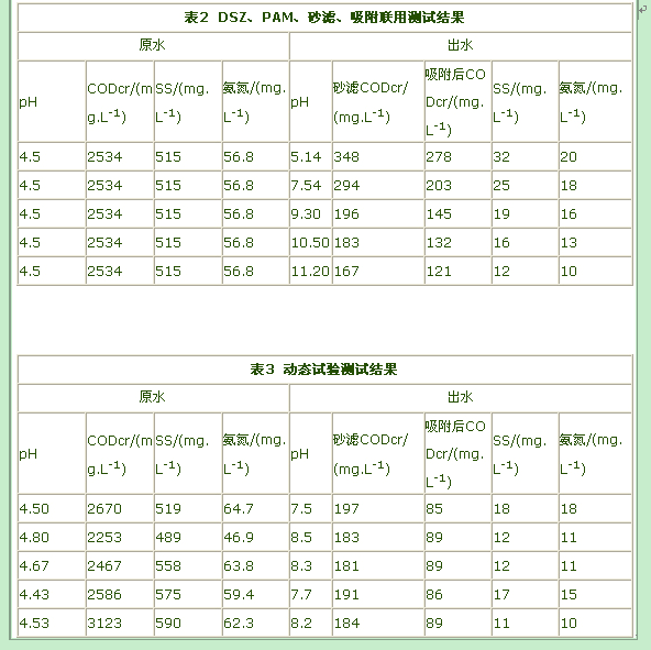 靜態實驗是采用燒杯實驗,即向5只燒杯中分別加人同樣的水樣做條件實驗,分別加人混凝劑、絮凝劑,經沉淀、砂濾、再吸附,最后測清水中的CODc、SS、氨氮及pH值。