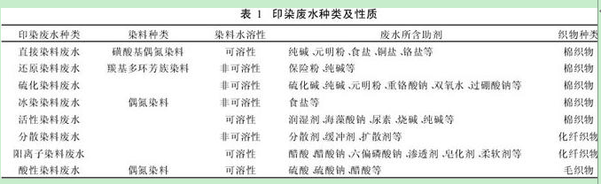 印染廢水實際是一大類廢水,印染種類多,情況復雜,就染料品種就有活性染料、直接染料、還原染料(士林染料)、硫化染料、冰染染料(納夫妥染料)、分散染料、陽離子染料、酸性染料等;就染色產品又可分為棉、化纖、毛、麻、絲綢、針織等。各類廢水性質有一定差別。見下表: