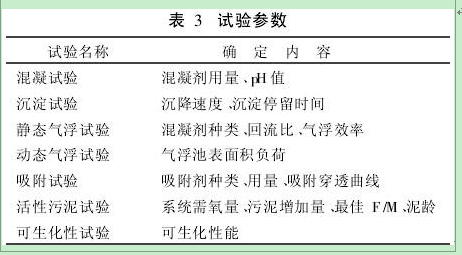 許多印染污水治理工程達不到預期要求的主要原因在于沒有掌握可靠的水質、水量資料,只憑經驗估算,設施的容量或停留時間不夠等原因。要掌握可靠的資料,應了解:廢水排放規律,即廢水、水量及水質動態;掌握廢水排放的水量;掌握廢水的水質。必要時應現場取樣分析或測試。特定的染色廢水采用某種工藝處理的可行性必須通過試驗來驗證。并通過試驗篩選合適的藥劑及各種設計參數(見表3)。