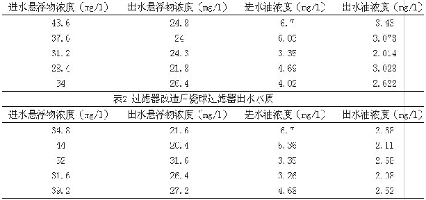 通過對過濾器內部結構的改造,并將卵石石英沙無煙煤濾料更換成瓷球濾料,經過一年多的生產運行,沒有發生軋機噴嘴堵塞情況。系統檢修期間對過濾器開罐檢查,濾料無破碎、結塊現象。濾后水質指標和水量均能滿足生產主線的要求,證明改造是成功的。過濾器改造前后化驗數據見表1和表2。