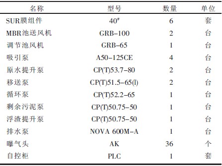 (3)膜池設置MBR膜組件系統及配套的出水、清洗、吹掃等系統[7]。MBR膜區內的吹掃(曝氣)有2個用途:①用于膜組件周圍的氣水振蕩,保持膜表面清潔;②為提供生物降解所需要的氧氣。通過膜的高效截留作用,全部細菌及懸浮物均被截流在曝氣池中,可以有效截留硝化菌,使硝化反應順利進行,有效去除氨氮;同時可以截留難于降解的大分子有機物,延長其在反應器中的停留時間,使之得到最大限度的降解。剩余污泥通過膜區剩余污泥泵定期排出,可控制系統內活性污泥的濃度及污泥齡。